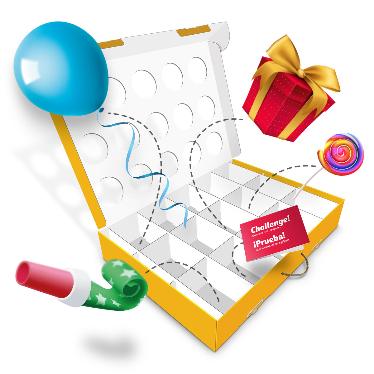 An original and reusable game that combines the excitement of a piñata, the ingenuity of challenges and the surprise of gifts.