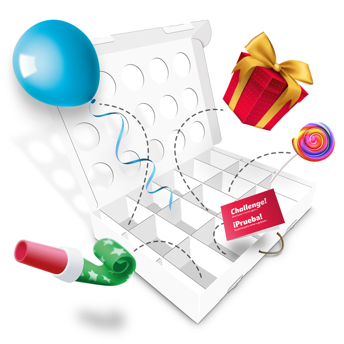 An original and reusable game that combines the excitement of a piñata, the ingenuity of challenges and the surprise of gifts.