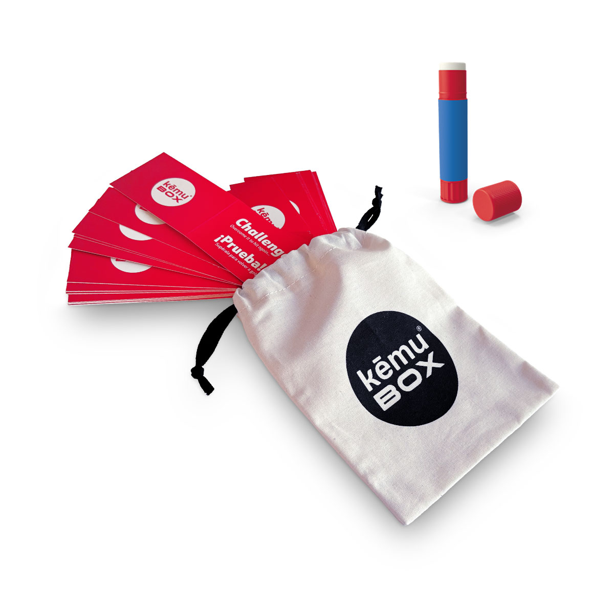 Fabricada en cartón y papel, sin plásticos y fácil de montar. Kemu BOX es ideal para jugar, compartir y sorprender a todos los invitados.